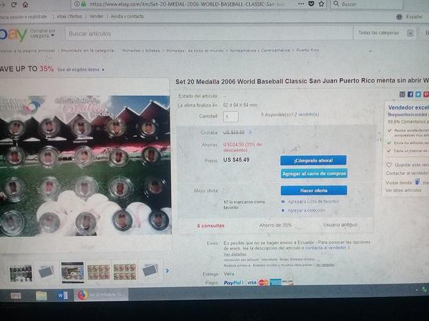 VENDO MEDALLAS DE BAISBOL DEL CLASICO DEL 2006 SU VALOR EN EBAY ES DE 45 DOLARES LAS 20 YO LAS DEJO EN 40 DOLARES SI TE INTERESA COMUNICATE A MI WASAP 0995164920